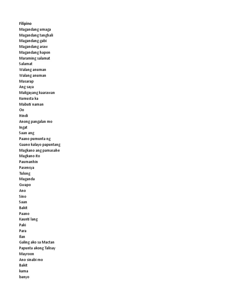 Filipino And Cebuano Words Phrases Pdf