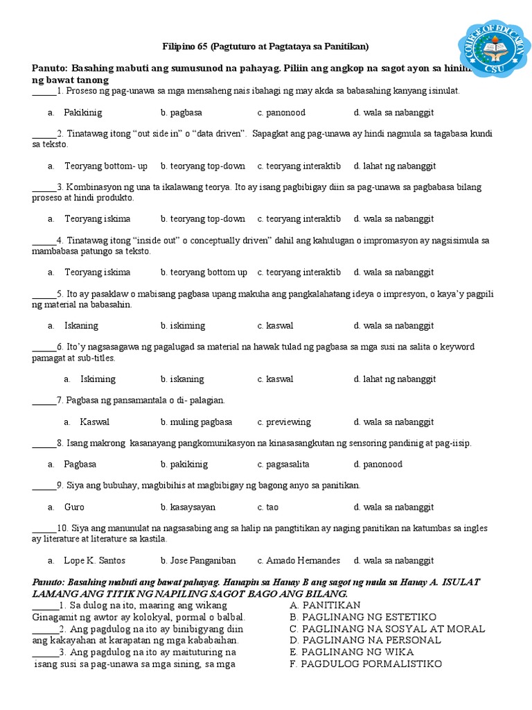 Pagtuturo At Pagtataya Sa Panitikan Pdf